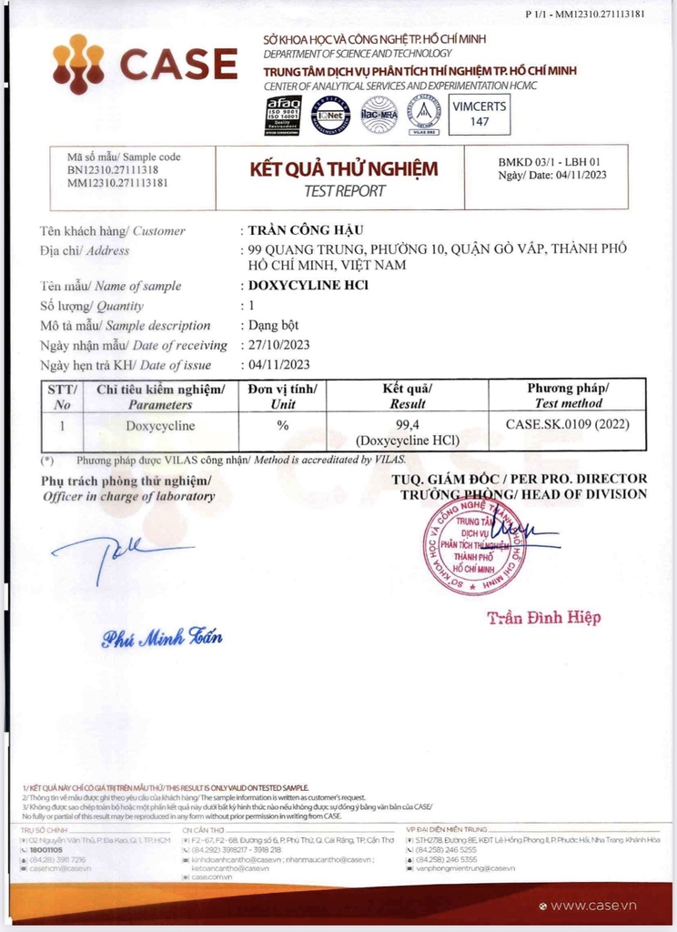 Với độ ổn định cao, dễ hấp thu qua đường tiêu hóa và hiệu quả mạnh trong mô gan, ruột – Doxycycline HCl hiện đang là sự lựa chọn hàng đầu cho các nhà máy sản xuất thuốc thú y và thủy sản tại Việt Nam.